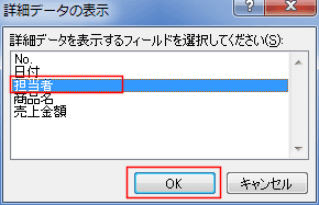 - 詳細データの表示で「担当者」を選択して、[OK]ボタンをクリックしました。