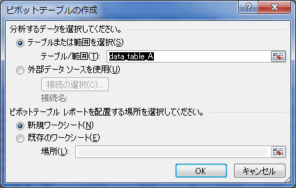 - テーブル/範囲にはテーブル名が入力されています。[OK]ボタンをクリックします。