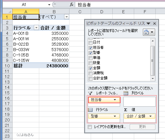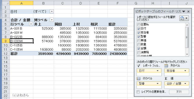 よねさんのExcelとWordの使い方|エクセル2010基本講座:目次|ピボットテーブルとピボットグラフ|ピボットテーブルを使ったデータ抽出
