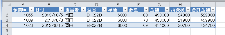 - 「岡田」が販売した型番「B-022B」のデータが抽出されました。