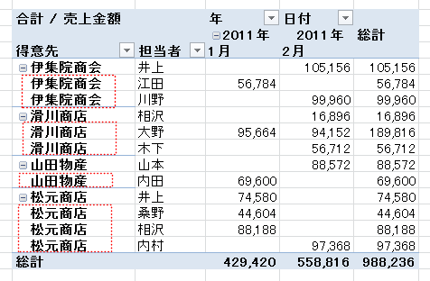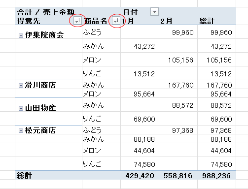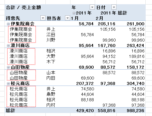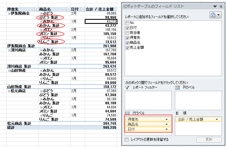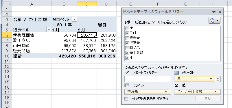 よねさんのExcelとWordの使い方|エクセル2010基本講座:目次|ピボットテーブルとピボットグラフ|ピボットテーブルのレイアウト