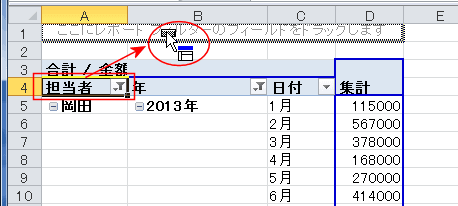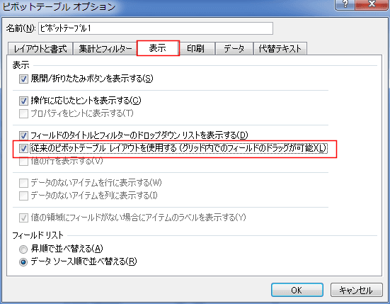 - Excel2007以降ではピボットテーブル内(グリッド内)でフィールドをドラッグする操作ができなくなっていますが、オプションの設定で変更することができます。