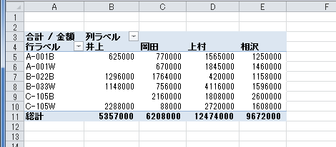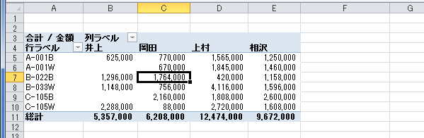 - 下図のようなピボットテーブルのレポートを作成しています。