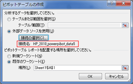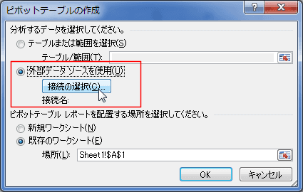 外部データソースを使ってピボットテーブルを作成する