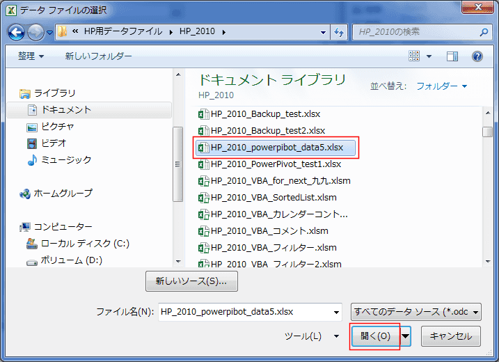 - 外部ファイルを選択して、[開く]ボタンをクリックします。