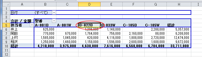 - 下図のようなピボットテーブルのレポートを作成しています。
