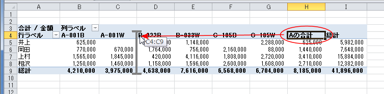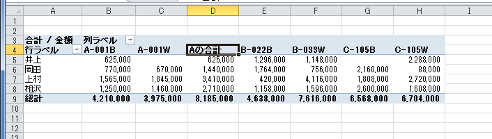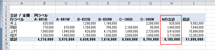 - 「Aの合計」が追加できました。