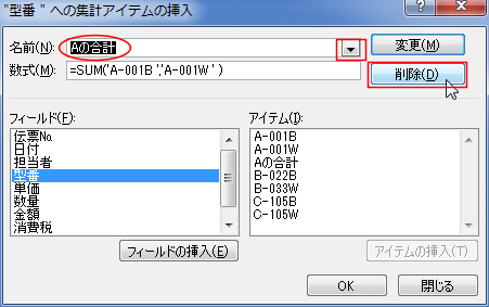- 追加した集計アイテムを削除する方法です。