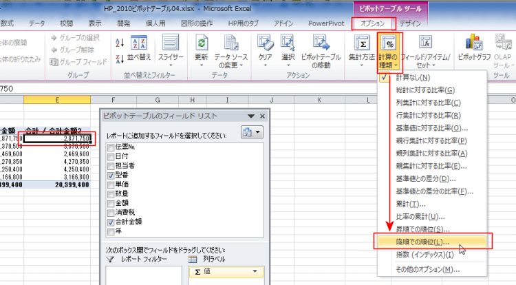 よねさんのExcelとWordの使い方|エクセル2010基本講座:目次|ピボットテーブルとピボットグラフ|ピボットテーブルで順位を求める