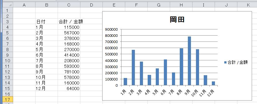 びぽっとテーブルの表を利用して標準のグラフを作成してみます。