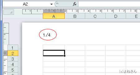 左ヘッダーに「1/4」とページ番号/ページ数 が表示されています。