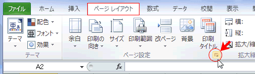[ページレイアウト]タブの[ページ設定]グループでダイアログボックスランチャーをクリックします。