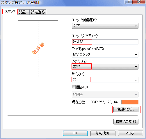 - [スタンプ設定]ボタンをクリックします。