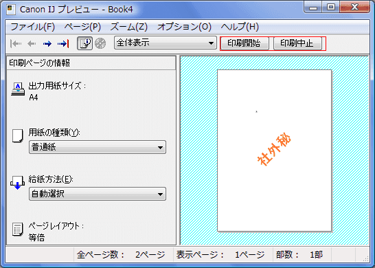 確認だけで印刷が不要なら[印刷中止]ボタンをクリックします。