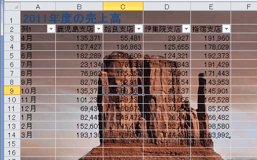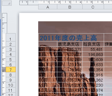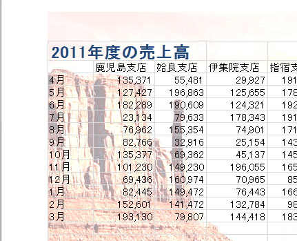 - 背景が表示されました・・・・画像が濃いためシートのデータが見えにくくなってしまいました。