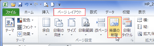 - [ページレイアウト]タブの[ページ設定]グループにある[背景の削除]を実行します。