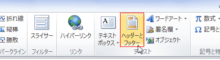- [挿入]タブの「テキスト」グループにある[ヘッダーとフッター]を実行します。