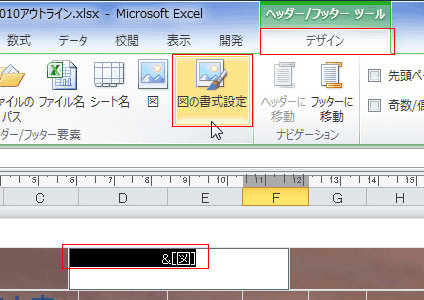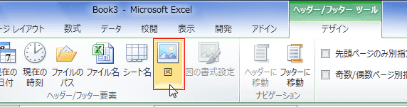 - [ヘッダー/フッター ツール]リボンで[ヘッダー/フッター要素]グループにある[図]を実行します。