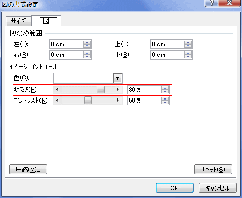 - 図タブを選択して明るさを「80%」にしました。