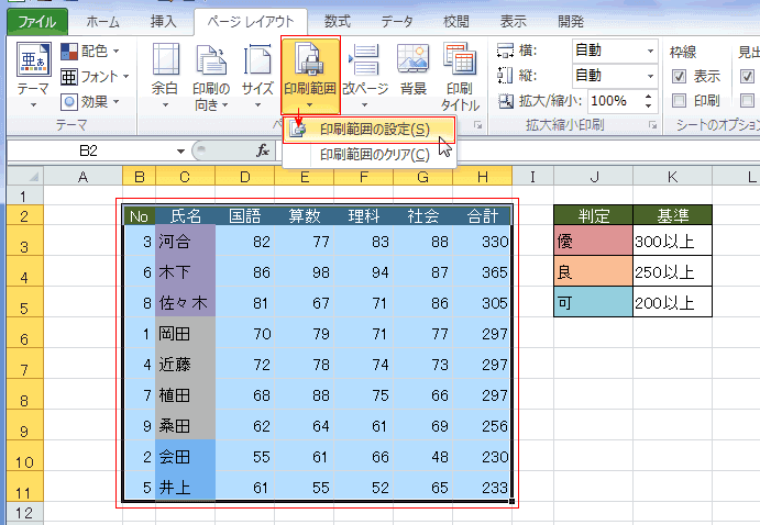 印刷範囲を設定する topへ