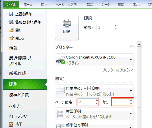 - 印刷範囲をページ指定することができます。