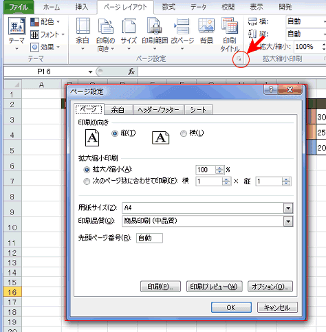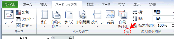 または[ページ設定]グループのダイアログボックスランチャーをクリックします。