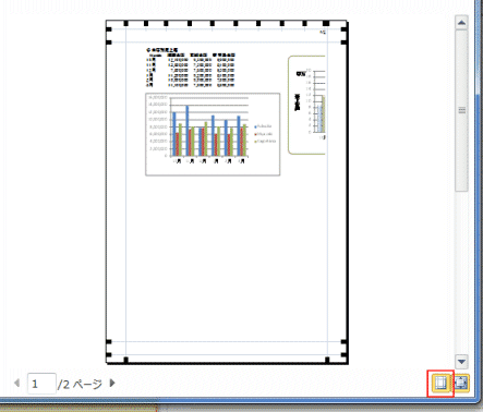 - 右側に表示される印刷プレビューで[余白の表示]ボタンをクリックしてオンにすると、余白の位置が表示されマウスで変更ができます。