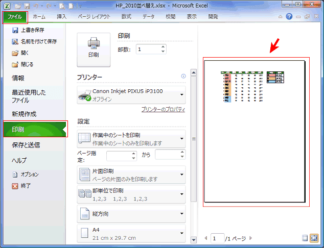 - Excel2010では印刷プレビューがバックステージビューで表示されるようになりました。