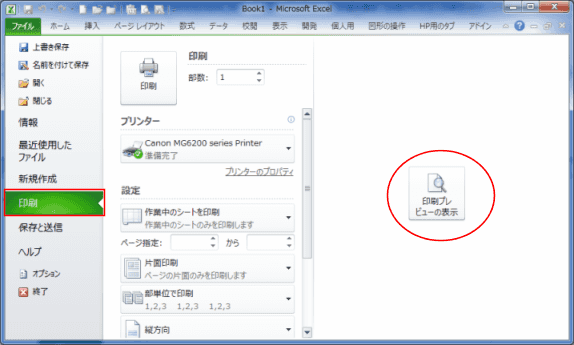 よねさんのExcelとWordの使い方|エクセル2010基本講座:目次|印刷|[印刷プレビューの表示]ボタンが表示される?