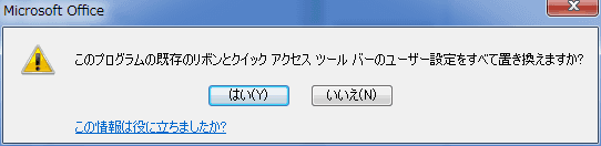 - クイックアクセスツールバーの設定を、前述のエクスポートしたファイルを使ってインポートします。