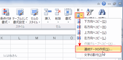 よねさんのExcelとWordの使い方|エクセル2010基本講座:目次|データ/数式/関数の入力|連続データの作成