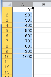- A10セルまでは値が入力されましたが、A11セル以降は空欄のままです。