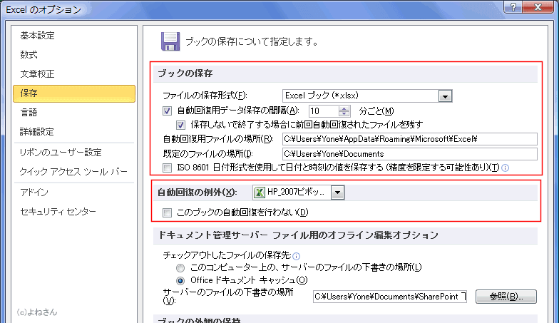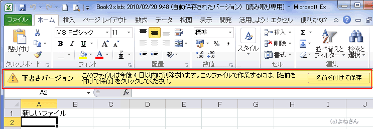 よねさんのExcelとWordの使い方|エクセル2010基本講座:目次|ブックの操作とブックの共有|Office 自動リビジョンについて