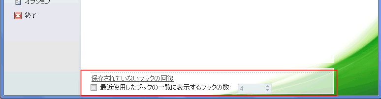 これをクリックすると、終了時前に自動保存されたファイルを開くことができます。