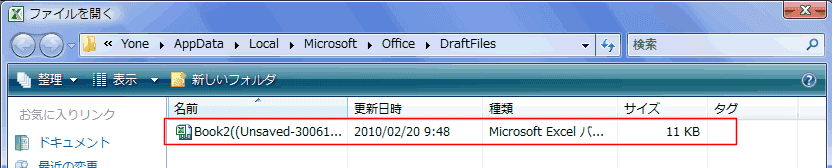 C:\Documents and Settings\<ユーザー名>\Local Settings\Application Data\Microsoft\Office\Unsaved