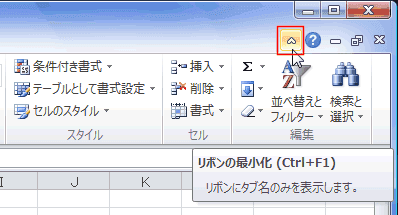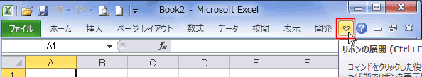 - Excel2010ではリボンの表示/非表示のボタンがあります。