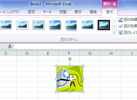 - 挿入していたクリップアートをダブルクリックして、「図ツール」リボンを表示した状態です。
