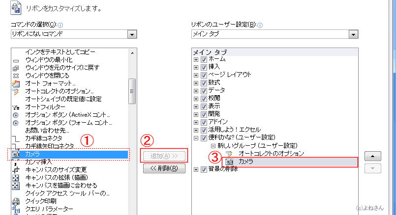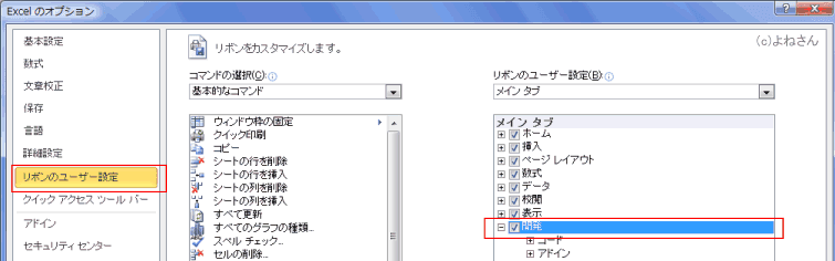よねさんのExcelとWordの使い方|エクセル2010基本講座:目次|リボンとクイックアクセスツールバー|リボンのユーザー設定
