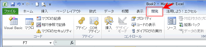 - 逆に、「開発」のチェックボックスをオフにすると「開発」タブは非表示になります。