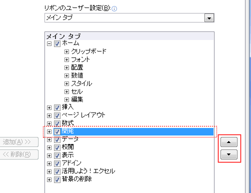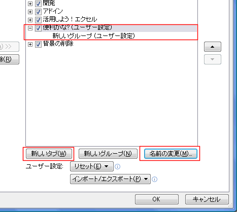 - Excel2010ではリボンのユーザー設定が可能になっています。