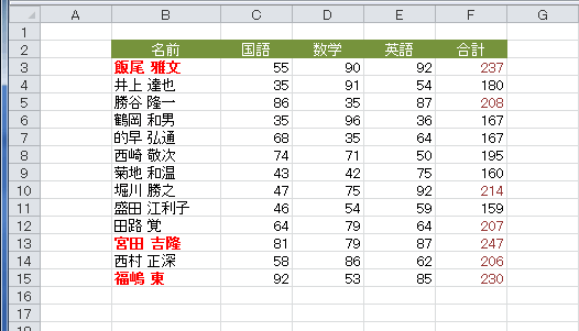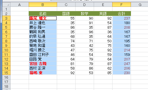 - 条件付き書式が設定されらセルが選択されました。