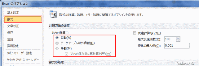 よねさんのExcelとWordの使い方|エクセル2010基本講座:目次|データ/数式/関数の入力|エクセル2010基本講座:計算方法(自動再計算/手動)の使い方