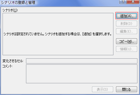 - 「シナリオの登録と管理」ダイアログボックスが表示されます。[追加]ボタンをクリックします。