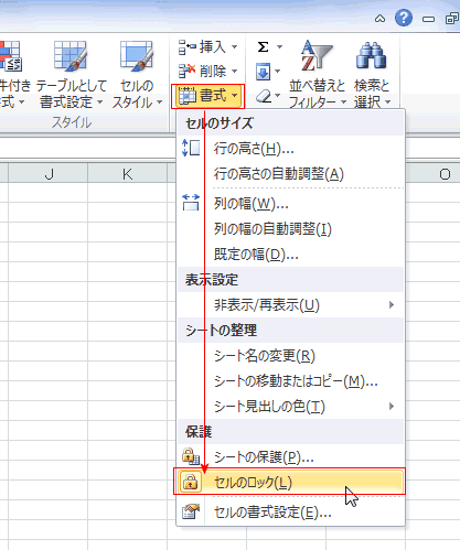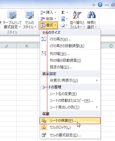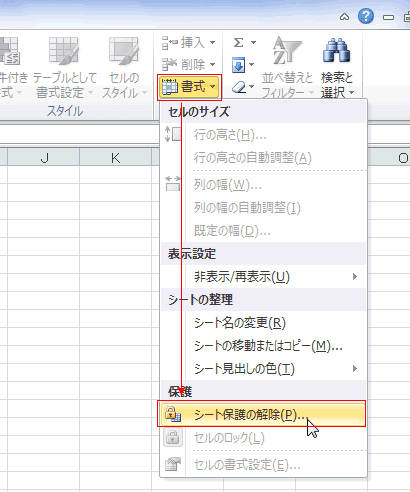 ワークシートの保護と保護の解除