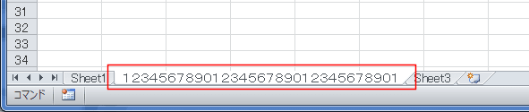 - 下図はシート見出しで全角で31文字入力しています。これ以降は入力ができなくなりました。(キーボードからの入力を受け付けません)