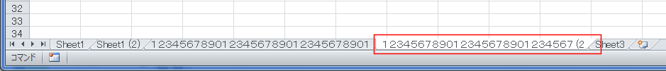 なぜか31文字ぎりぎりまでのシート名とはならずに、30文字で後ろのかっこがないです。