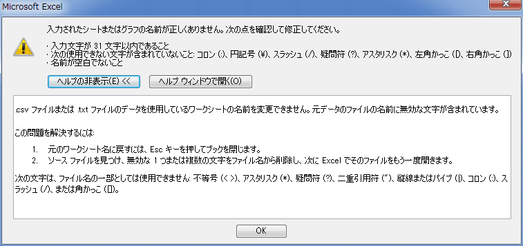 - シート名に使用できない文字