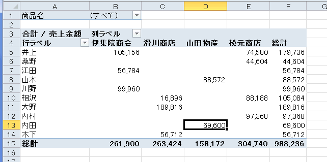 - 作成したピボットテーブル