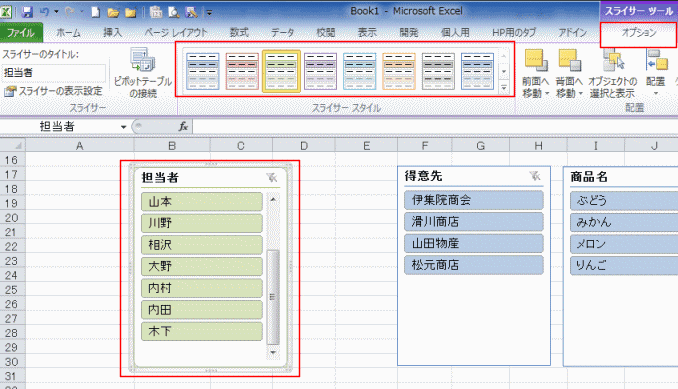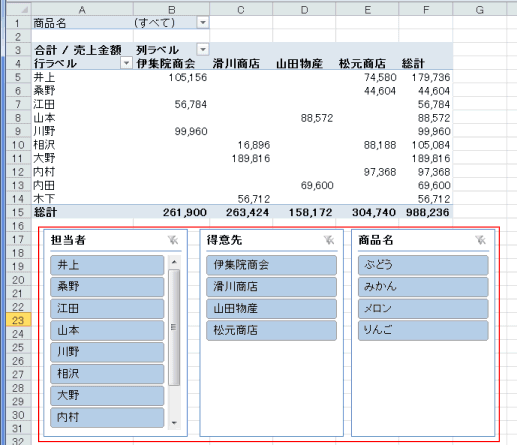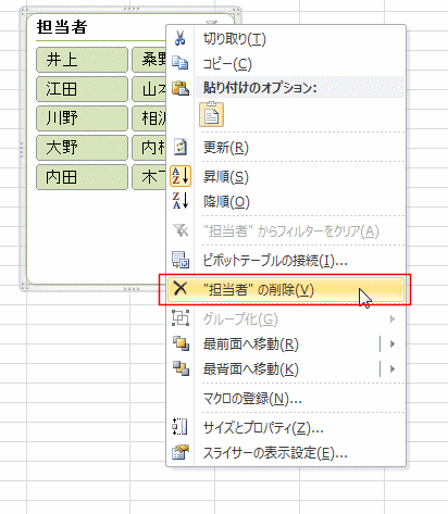 よねさんのExcelとWordの使い方|エクセル2010基本講座:目次|ピボットテーブルとピボットグラフ|スライサーの使い方について