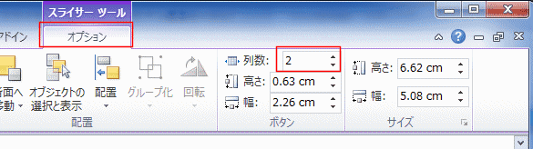 ボタン グループに表示される「列数」のボックスで列数を指定します。